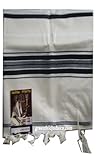 100% Wool Tallit Prayer Shawl in Black and White Stripes Size 59" L X 80" W (Size 70)